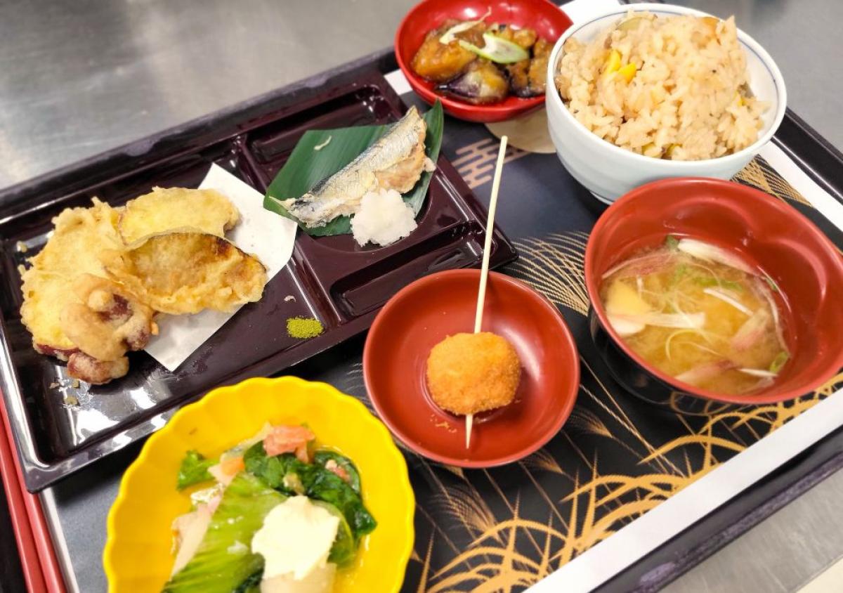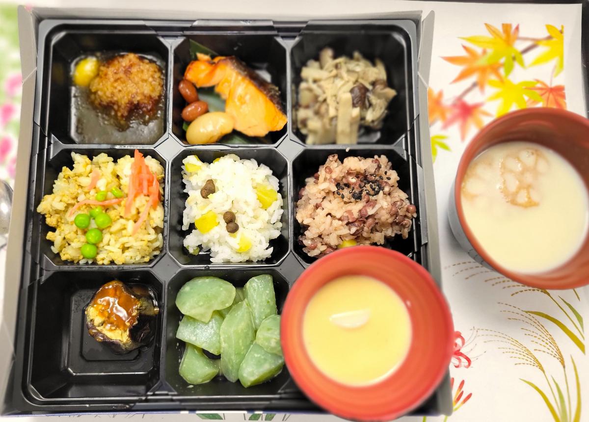 少し早いのですが、例年お彼岸すぎると年明けまで厨房さんはバタバタしますのでゆっくりお祝いするために早めにお月見の行事食をさせていただきました。
