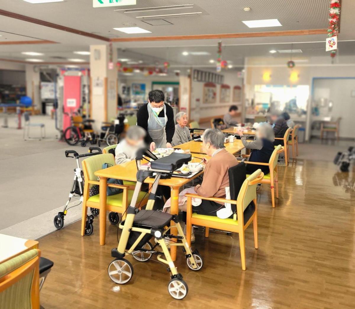 デイケアフロアはクリスマスモードの中、
